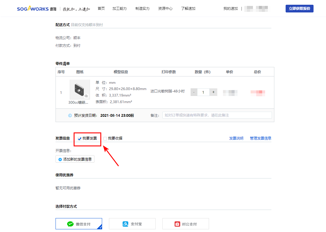 速加支持開(kāi)具紙質(zhì)發(fā)票和電子發(fā)票。紙質(zhì)發(fā)票可隨貨郵寄給您,也可以單獨(dú)郵寄給您。您可在傳統(tǒng)詢價(jià)時(shí)選擇相應(yīng)的發(fā)票方式。