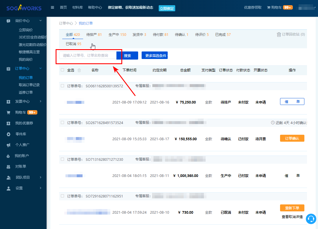 2. 點擊【訂單中心-我的訂單】,進(jìn)入我的訂單頁面