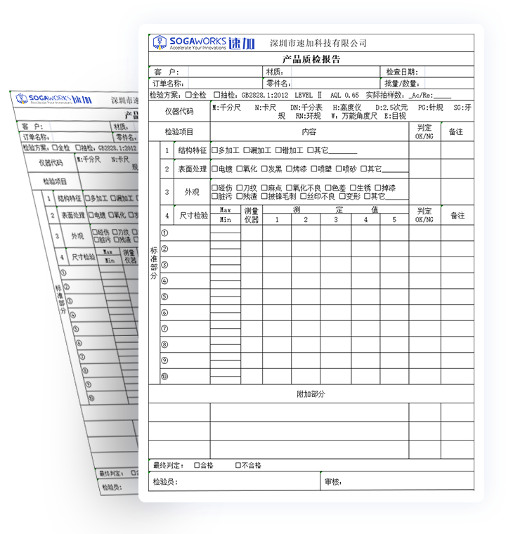 速加設(shè)有專業(yè)質(zhì)檢團隊,確保零件品質(zhì);對加工完的零件,發(fā)貨前進行100%全檢。確保滿足您的要求。